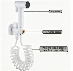 Этот распылитель для биде, изготовленный из высококачественного, безопасного для пищевых продуктов АБС-пластика, рассчитан на длительный срок службы. Он обеспечивает исключительную ударопрочность, устойчивость к высоким температурам и устойчивость к ржавчине, обеспечивая гигиеническое и долговечное решение для вашей ванной комнаты, намного превосходя дешевые пластиковые альтернативы.