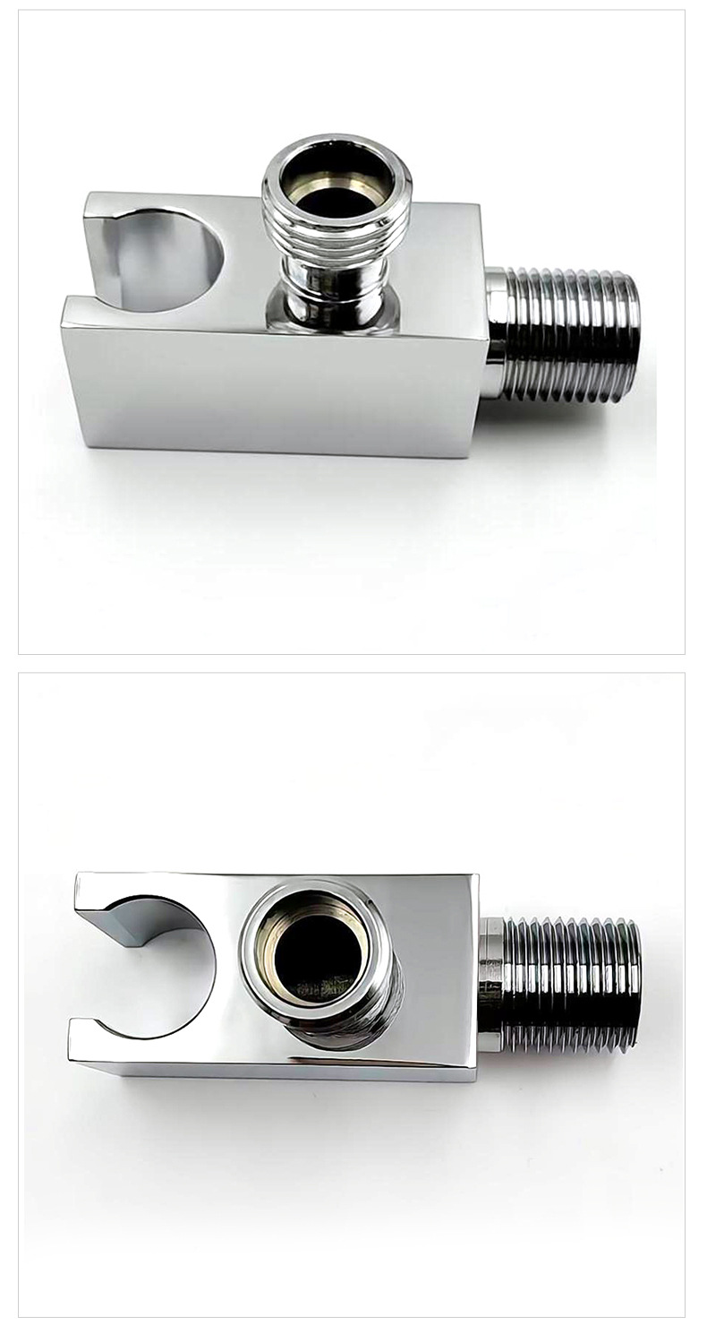 Структура:Оснащен U-образным пазом для размещения ручных душевых насадок и встроенным интерфейсом для выпуска воды стандарта G1/2 сверху, с интерфейсом с внешней резьбой сбоку для подключения водопроводных труб, что обеспечивает комплексный монтаж подачи воды и размещение душа.
