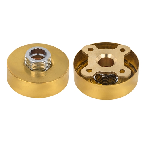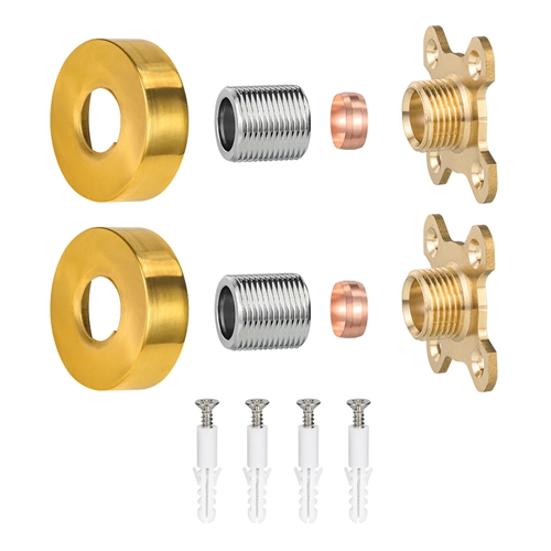 Эти круглые монтажные комплекты для душа предназначены для установки в ванной комнате. Их основная цель — обеспечить прочное, плоское и простое в установке основание для настенных смесителей. Изделие имеет композитную конструкцию из латуни и углеродистой стали: ключевые силовые и соединительные детали, которые находятся в непосредственном контакте со стеной и интерфейсом смесителя, изготовлены из латуни, чтобы обеспечить долговременную коррозионную стойкость и герметичность соединения; В качестве основной несущей конструкции корпус пластины изготовлен из высокопрочной углеродистой стали, что обеспечивает необходимую опорную жесткость в целом и предотвращает деформацию вследствие длительного напряжения. Поверхность корпуса пластины обработана гальванопокрытием и другими процессами, придает ей золотистый вид и легко чистится. Он выполнен в виде стандартного квадрата с предварительно установленным установочным отверстием, чтобы соответствовать обычным аксессуарам для смесителей и упростить процесс установки.