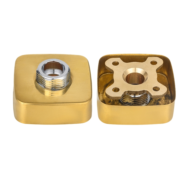 Золотая квадратная пластина для смесителя для душа. Ее основная цель — обеспечить прочное, плоское и простое в установке основание для настенных смесителей. Изделие имеет композитную конструкцию из латуни и углеродистой стали: ключевые силовые и соединительные детали, которые находятся в непосредственном контакте со стеной и интерфейсом смесителя, изготовлены из латуни, чтобы обеспечить долговременную коррозионную стойкость и герметичность соединения; В качестве основной несущей конструкции корпус пластины изготовлен из высокопрочной углеродистой стали, что обеспечивает необходимую опорную жесткость в целом и предотвращает деформацию вследствие длительного напряжения. Поверхность корпуса пластины обработана гальванопокрытием и другими процессами, придает ей золотистый вид и легко чистится. Он выполнен в виде стандартного квадрата с предварительно установленным установочным отверстием, чтобы соответствовать обычным аксессуарам для смесителей и упростить процесс установки.