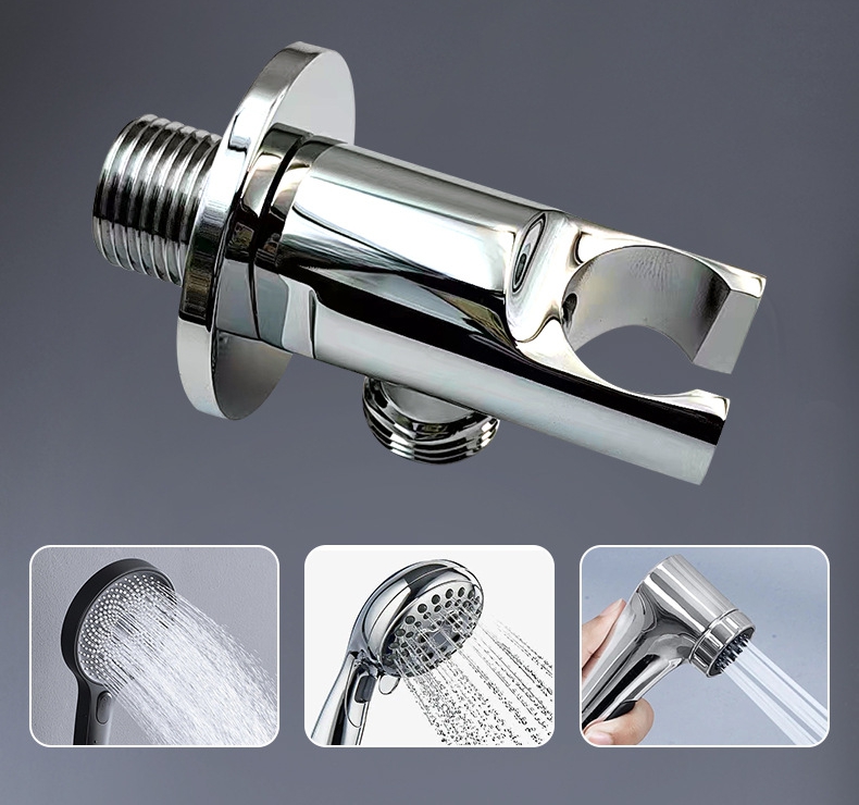 Утолщенный квадратный угловой клапан из твердой латуни с держателем для душа, прямой запорный клапан 1/2 дюйма для биде и ручного душа, сантехническая арматура для ванной комнаты