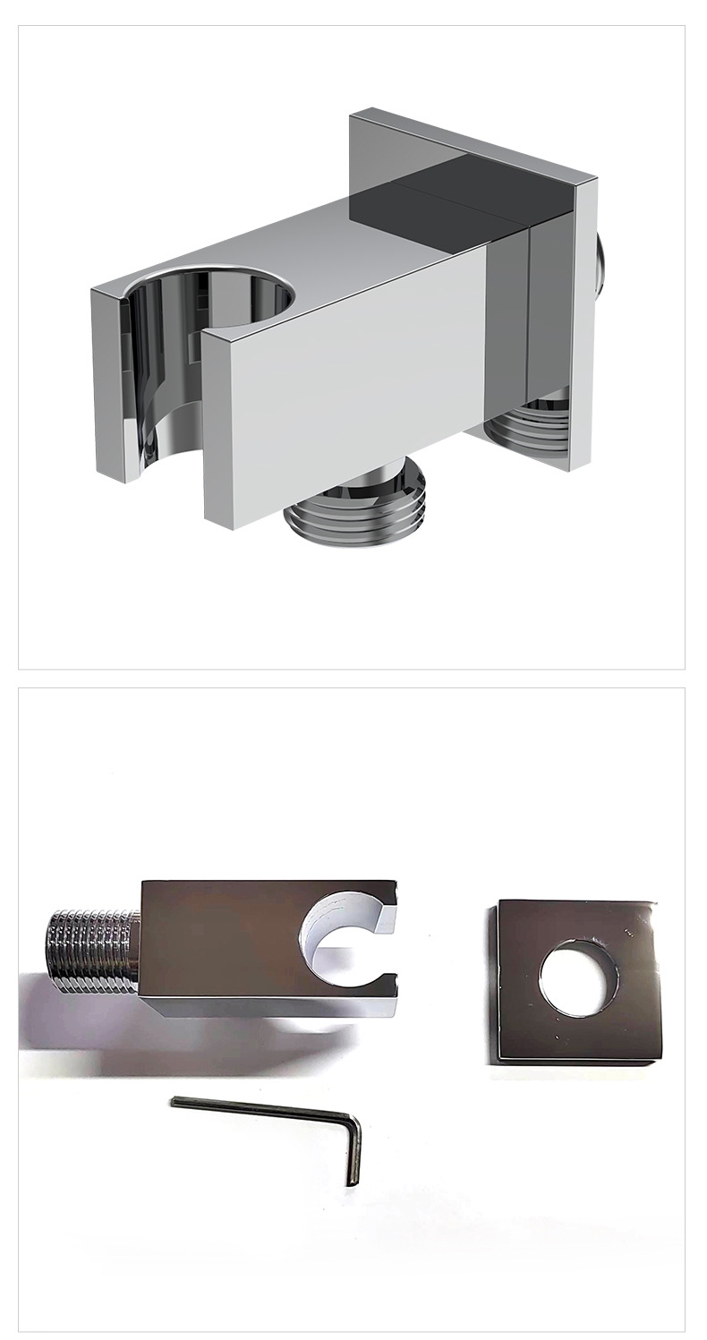 Современный и стильный дизайн:Изящная квадратная форма с хромированной отделкой не только служит функциональным держателем для душа, но и повышает общую эстетическую привлекательность пространства ванной комнаты.